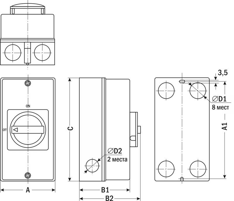 - Возможность установки замка или пломбы для блокировки включения
