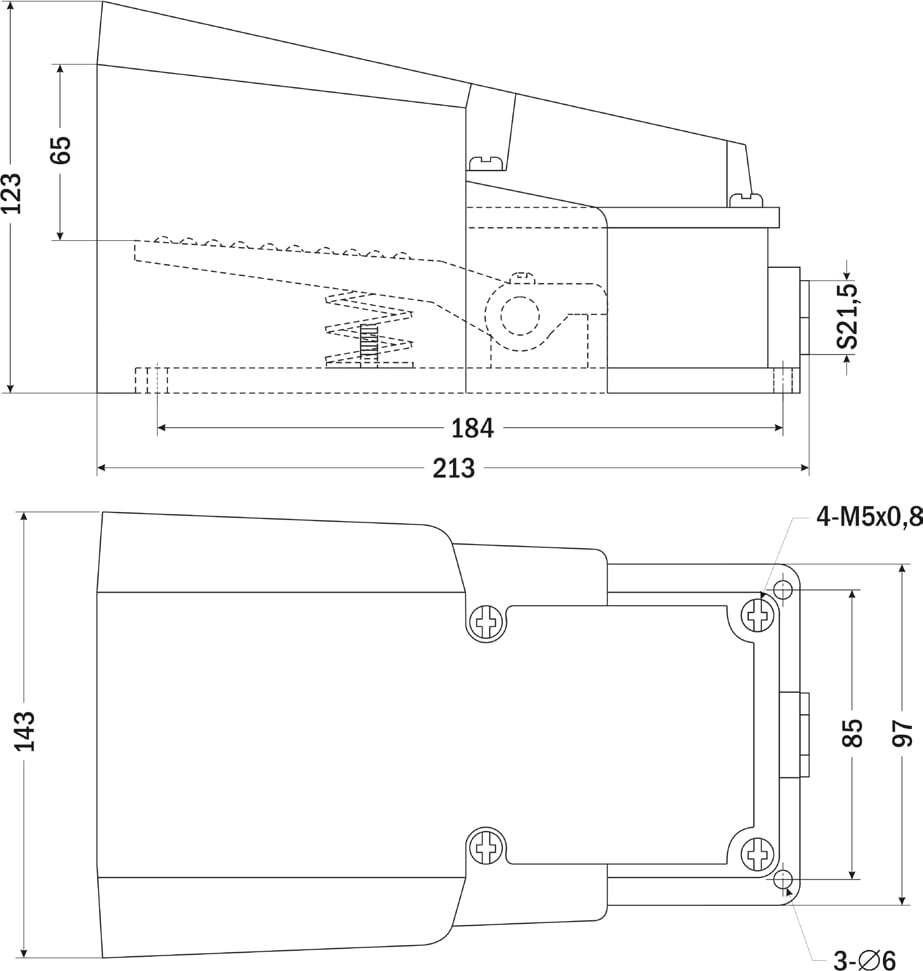 - 3 монтажных отверстия ∅ 6 мм для фиксации педали на плоскости