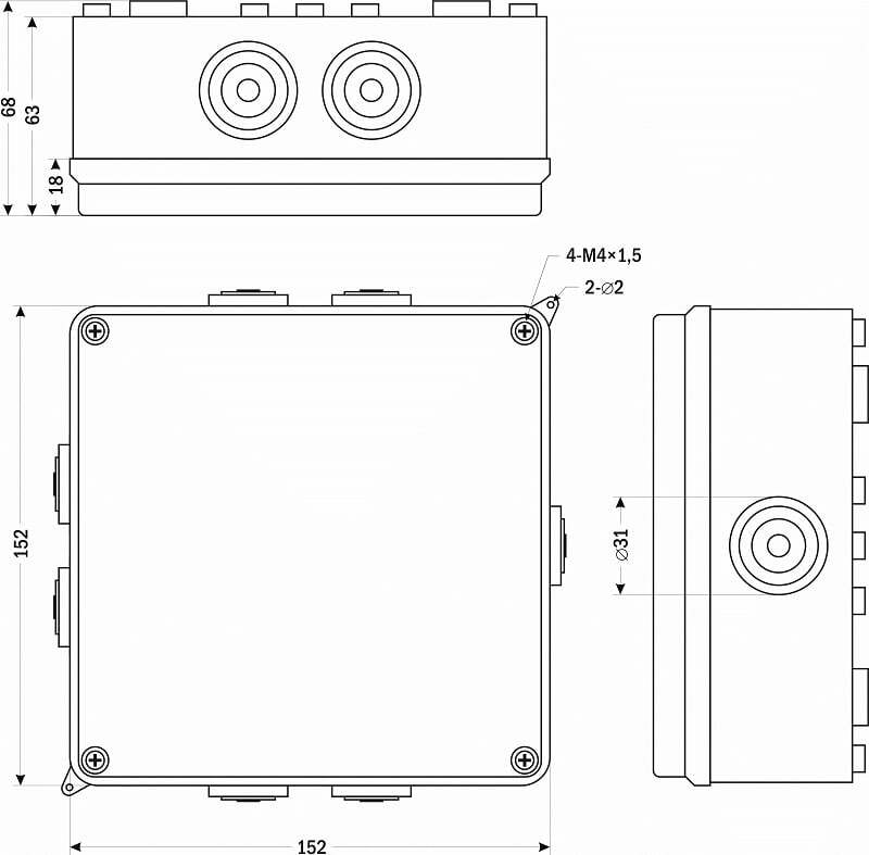 Распределительная коробка КМВ-А-15157 предназначена для использования с гофрированными, гладкими или армированными трубами в силовых или слаботочных сетях. Установка труб через сальники обеспечивает дополнительную изоляцию проводки на стыках. Коробка герметична, обладает степенью защиты IP65 и может быть установлена в помещениях с повышенной влажностью и содержанием пыли.