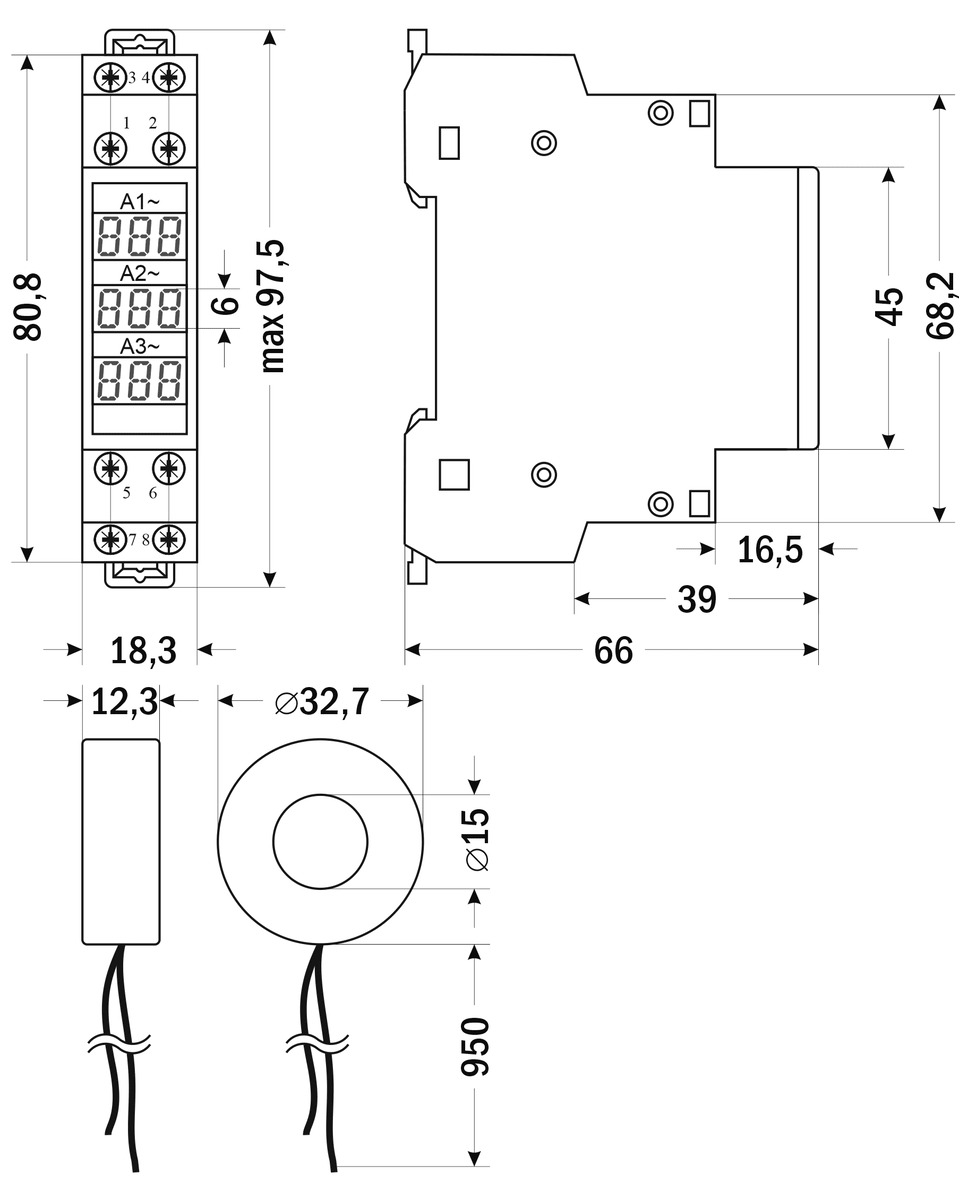 Амперметр трехфазный на DIN-рейку Omix D1-A3-3 предназначен для измерения и индикации силы тока в трехфазных сетях переменного тока