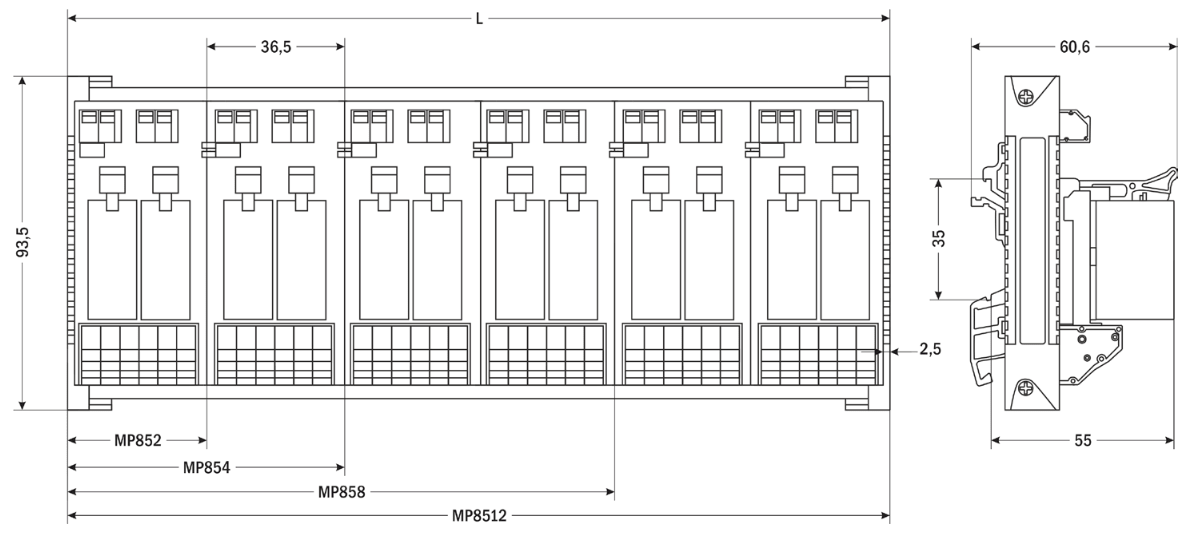 | Габаритные размеры | 93,5×40,3×60,6 мм | 93,5×77×60,6 мм | 93,5×150×60,6 мм | 93,5×224×60,6 мм |