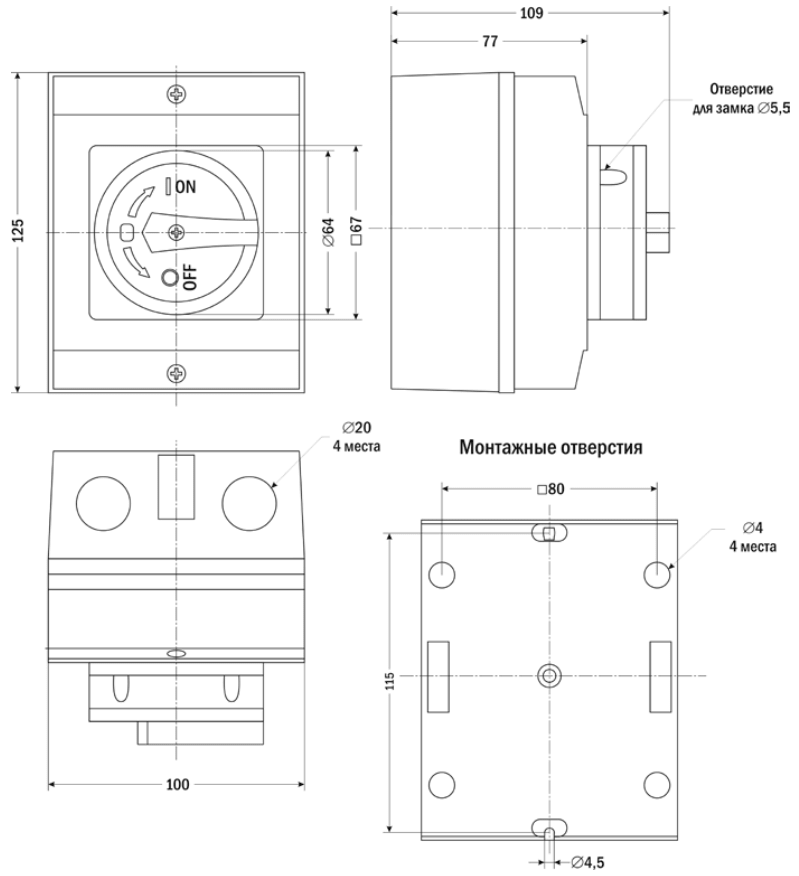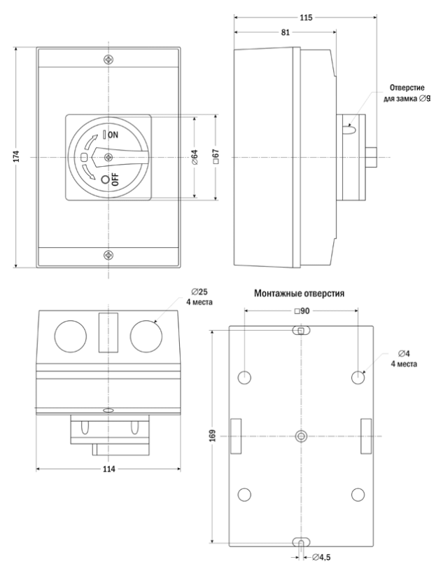 - Возможность установки замка или пломбы для блокировки включения