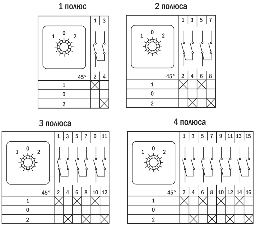 | Модель | Ном. ток, А | Кол-во полюсов | Кол-во положений |