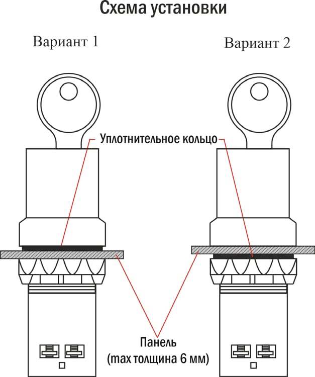 - Монтаж в плоские панели толщиной до 6 мм, фиксация стопорной гайкой