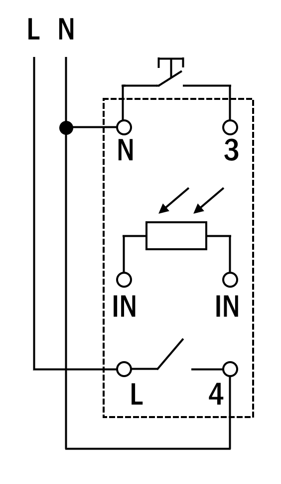 При замыкании контакта реле N-3 с помощью внешнего устройства, происходит размыкание контакта реле L-4 и гаснет индикатор состояния реле.